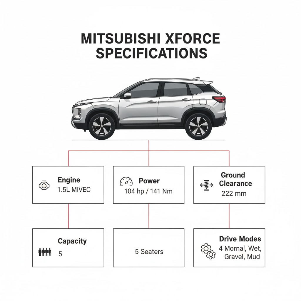 Berikut spesifikasi utama Mitsubishi XForce versi 1.5L bensin: