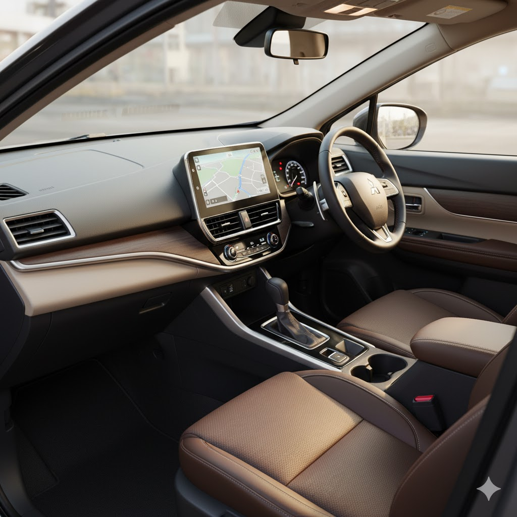 Dimensinya sedikit lebih besar dari Xpander biasa, dengan ground clearance 220 mm, menjadikannya siap melibas berbagai kondisi jalan — dari jalan kota hingga jalur semi-offroad.