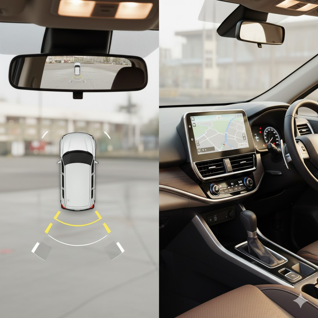 - Sensor Parkir dan Kamera Belakang: memudahkan parkir di area sempit.